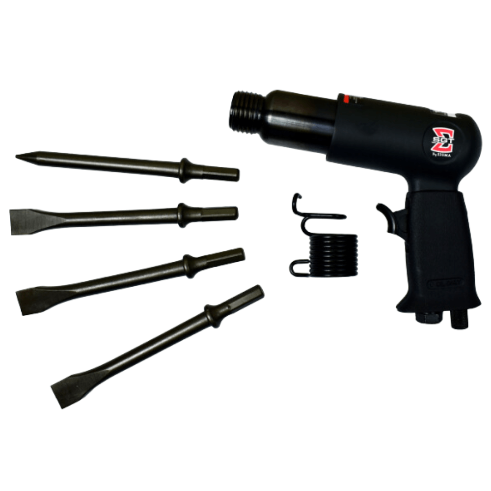 O Martelete é indicado para retirada de pontos de solda, retirada de rebites, cortes em chapas, desincrutações, reparação em geral, entre outros. Possui regulador de ar para controle de velocidade do equipamento.